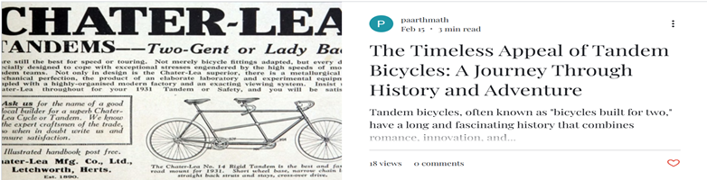 On the blog, I explore everything from the history and mechanics of bicycles to their impact on physical and mental health. I’ve used it to promote cycling events, connect with my community, and even published an editorial on Patch.com advocating for biking as a family tradition. Whether it’s encouraging readers to sweat it out or simply reminding them to enjoy the ride, the blog reflects who I am curious, active, and always chasing the next breath of fresh air.